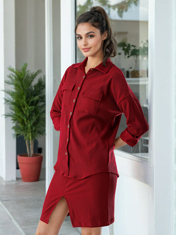 Women's Corduroy Cargo Pocket Oversized Shirt